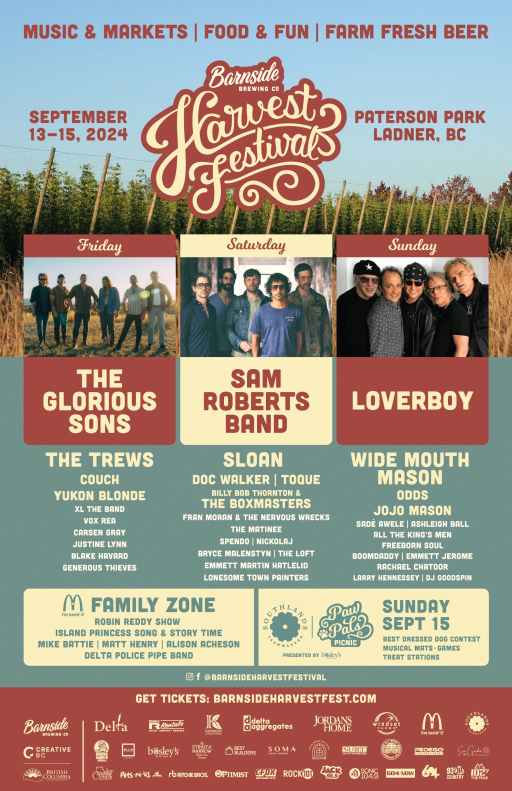 Some of Canada’s best artists will be rocking the mainstage including The Glorious Sons, Sam Roberts Band, Loverboy, The Trews, Sloane and more!