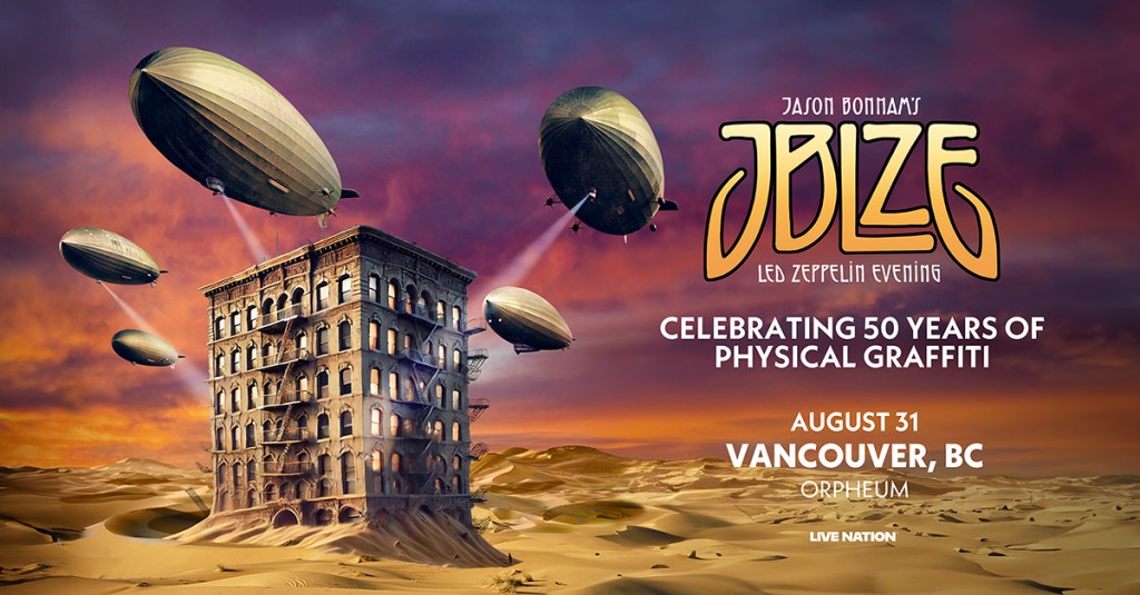 Jason Bonham’s Led Zeppelin Evening Where Orpheum Theatre, Vancouver Map When Aug 31/25 07:00 PM - Aug 31/25 10:00 PM Age All Website https://www.ticketmaster.ca/event/110062B09C442E1A LIVE NATION PRESENTS: JASON BONHAM’S LED ZEPPELIN EVENING August 31st, 2025 – Orpheum Theatre – Tickets Here Celebrating 50 years of Physical Graffiti