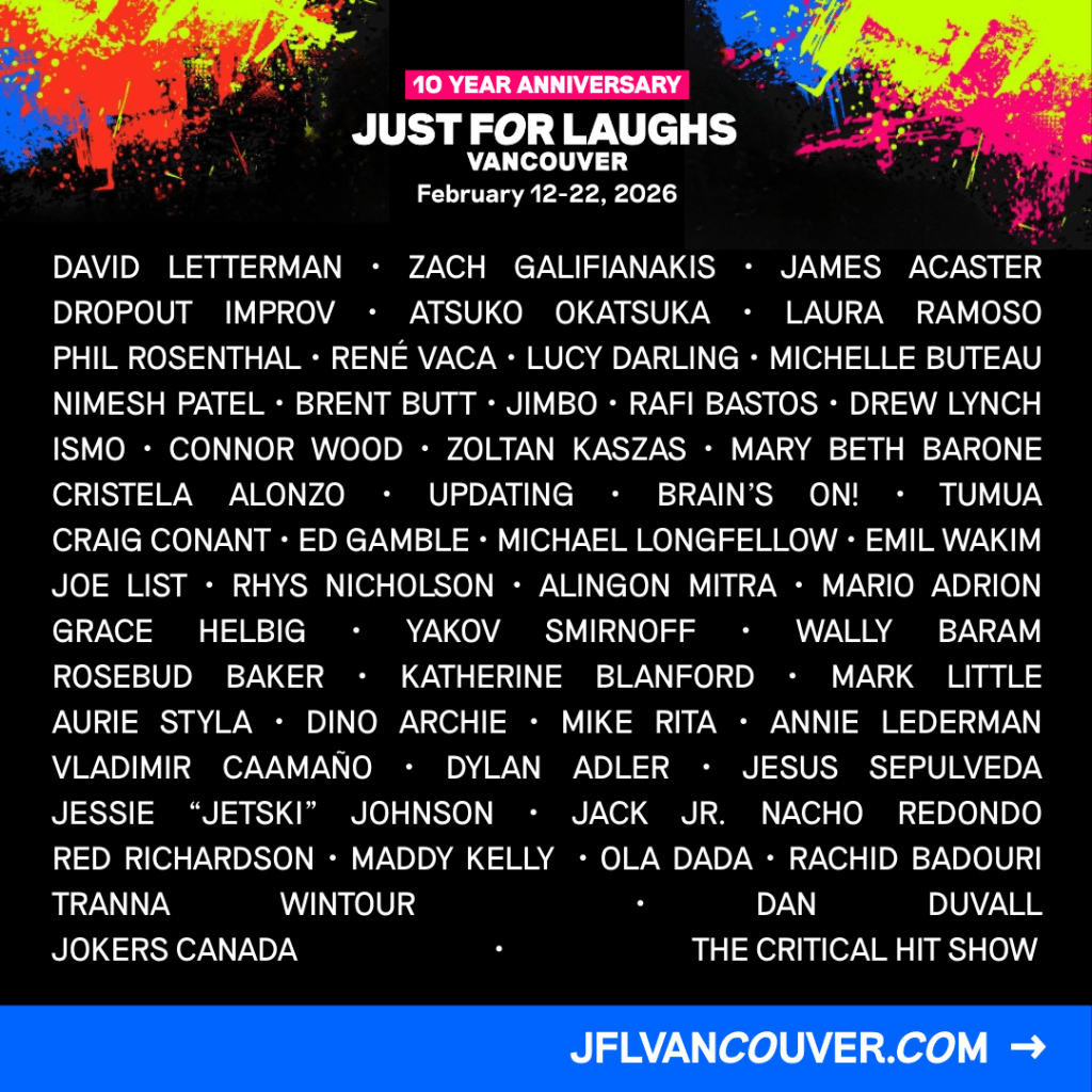 This year, Just For Laughs is celebrating a major milestone: 10 years of bringing top-tier comedy to the West Coast as Vancouver’s Just For Laughs festival! For over a decade, Just For Laughs VANCOUVER has been Western Canada’s biggest comedy festival, and they’re marking this anniversary with the kind of world-class talent and electric energy that has defined us from day one.