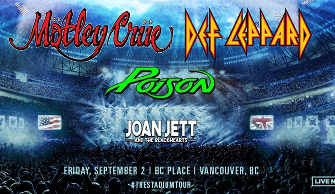 BC Place, Vancouver Rescheduled: Rock 101 Welcomes The Stadium Tour: Def Leppard, Mötley Crüe, Poison, and Joan Jett & The Blackhearts to BC Place on September 2nd 2022!