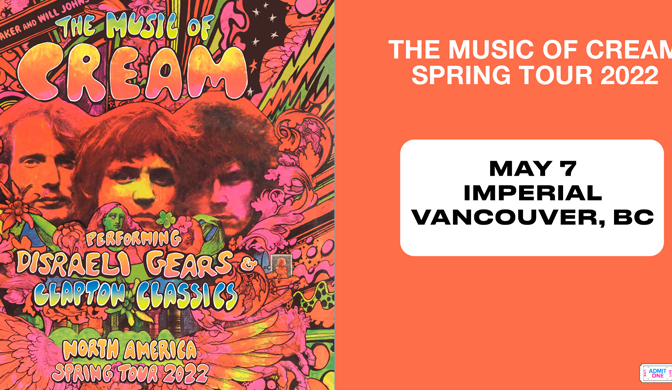 Biltmore Cabaret, Vancouver Rock 101 Welcomes the Music of Cream to the Biltmore Cabaret on May 6th, 2022.