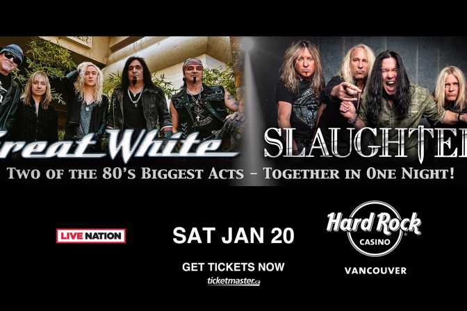 Hard Rock Casino , Coquitlam Get ready for a night of electrifying rock ‘n’ roll as Great White and Slaughter take the stage!